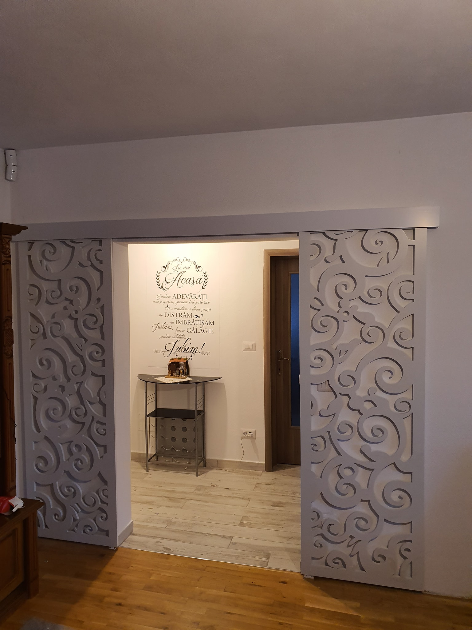 Usi glisante din material MDF vopsit, cu masca pentru sistemul de glisare - Model Bucle