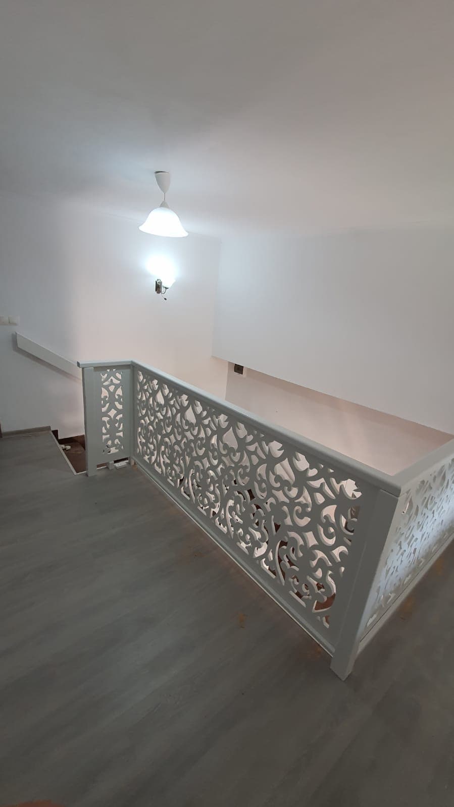 Balustrada Ornamentala cu stalpi simpli si mana curenta din material MDF vopsit - Model Floral