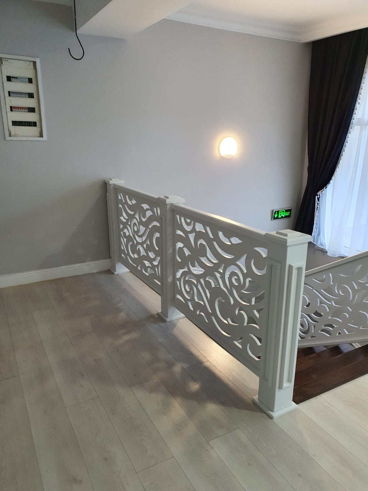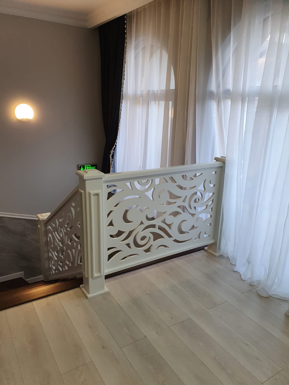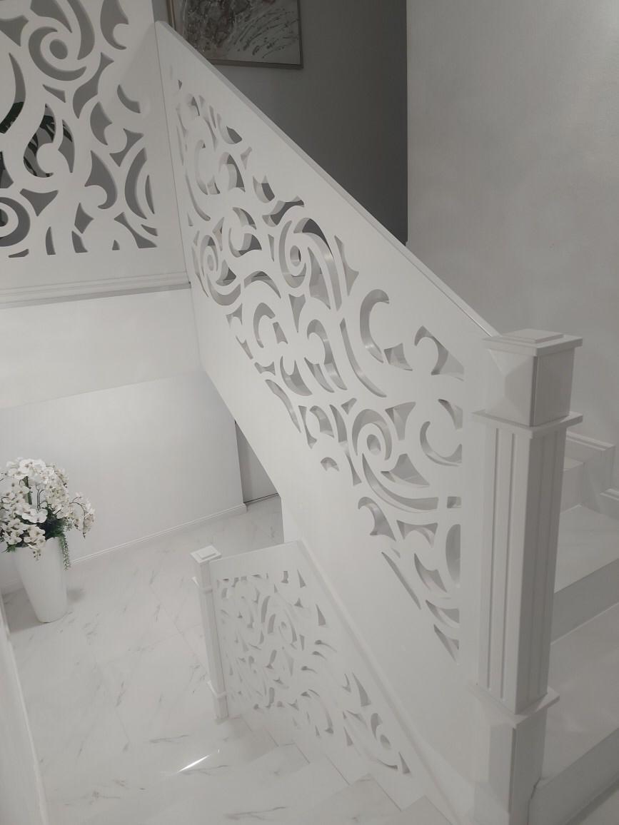 Balustrada Ornamentala din MDF vopsit, culoare la alegere din catalogul de culori RAL. Extracost se aplica pentru culorile metalizate, combinatiile de culori si MDF furniruit.