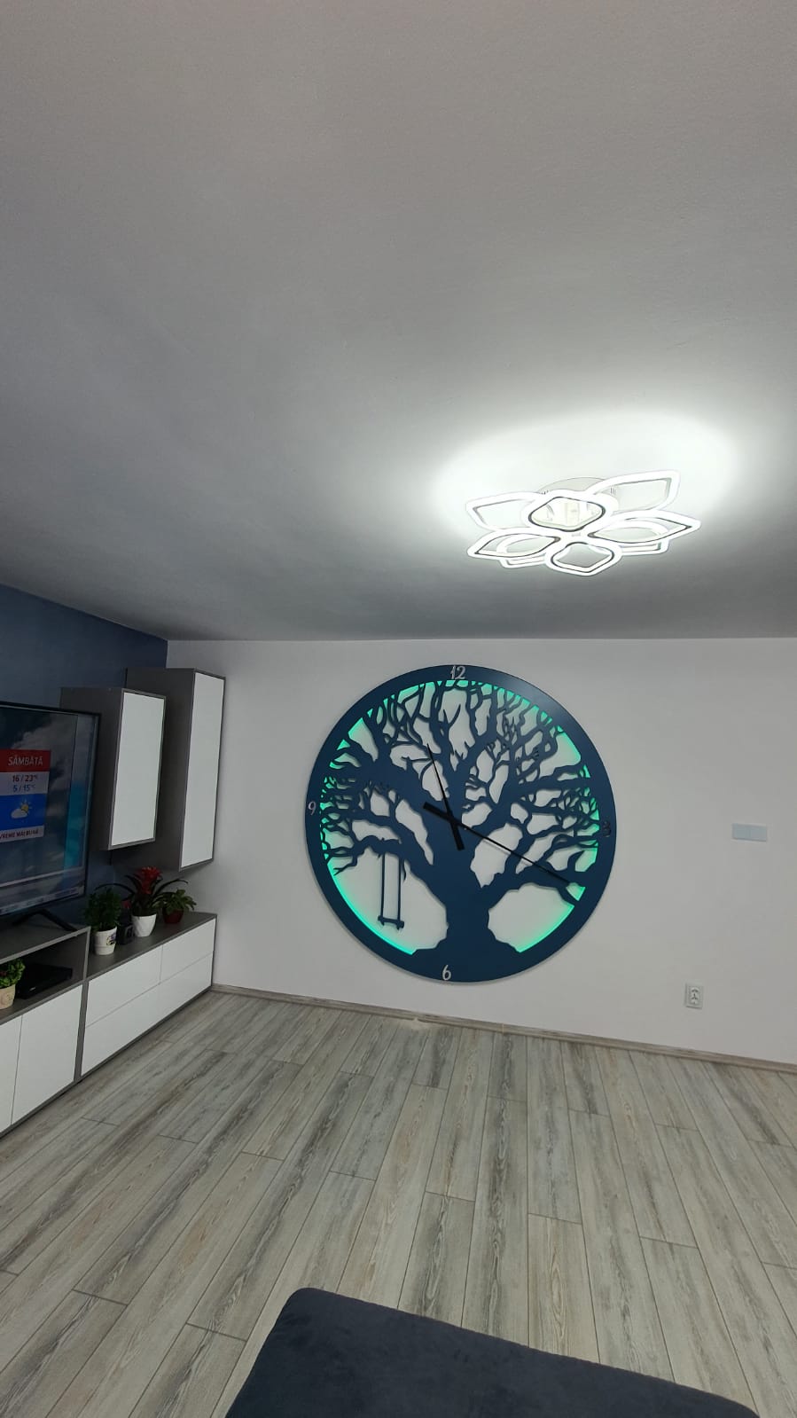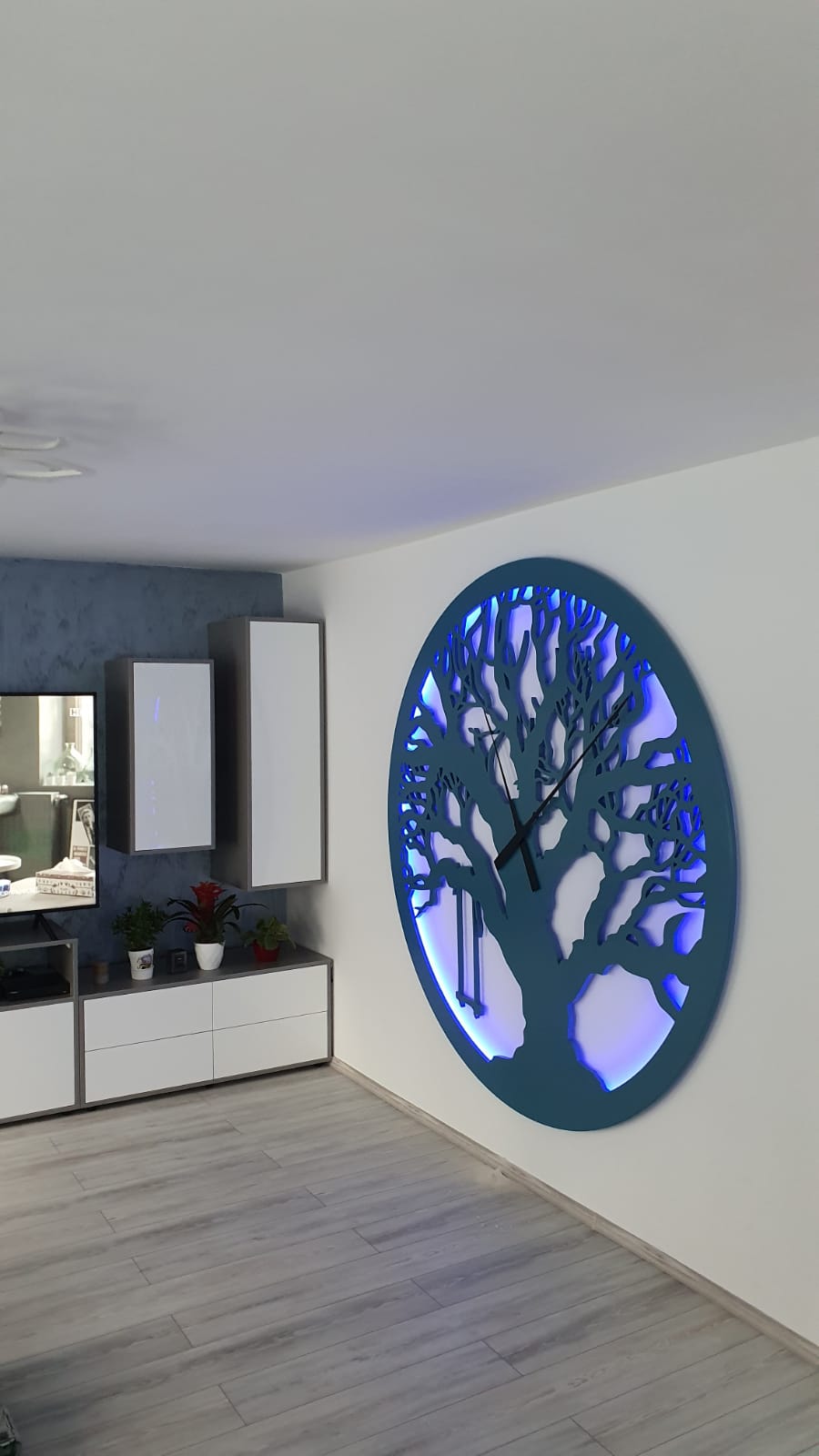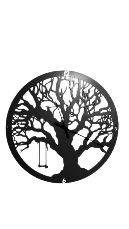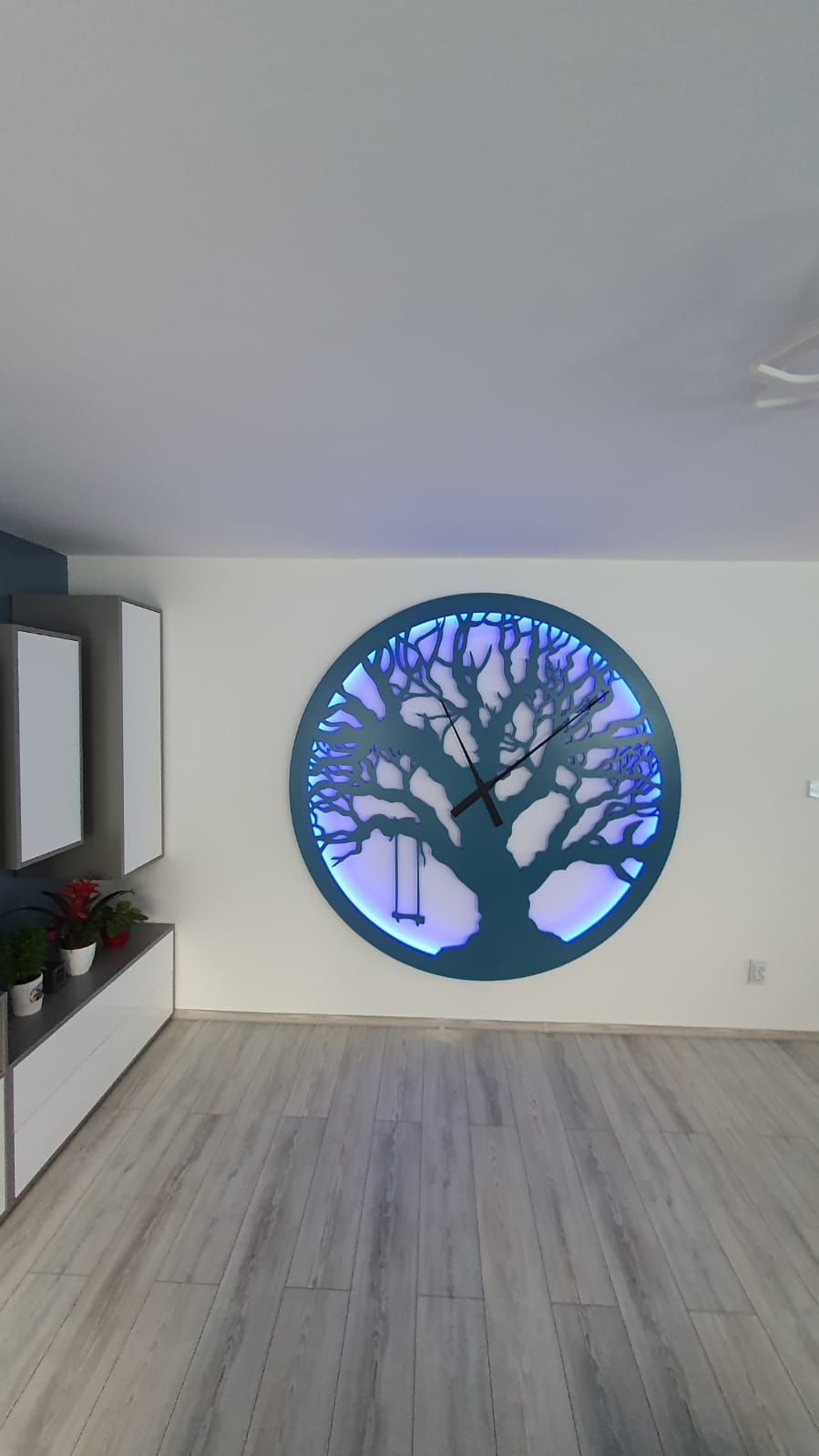 Ceas decorativ, iluminat, vopsit culoare speciala, din material MDF - Model Arbore cu leagan Dimensiuni: 100 cm x100 cm