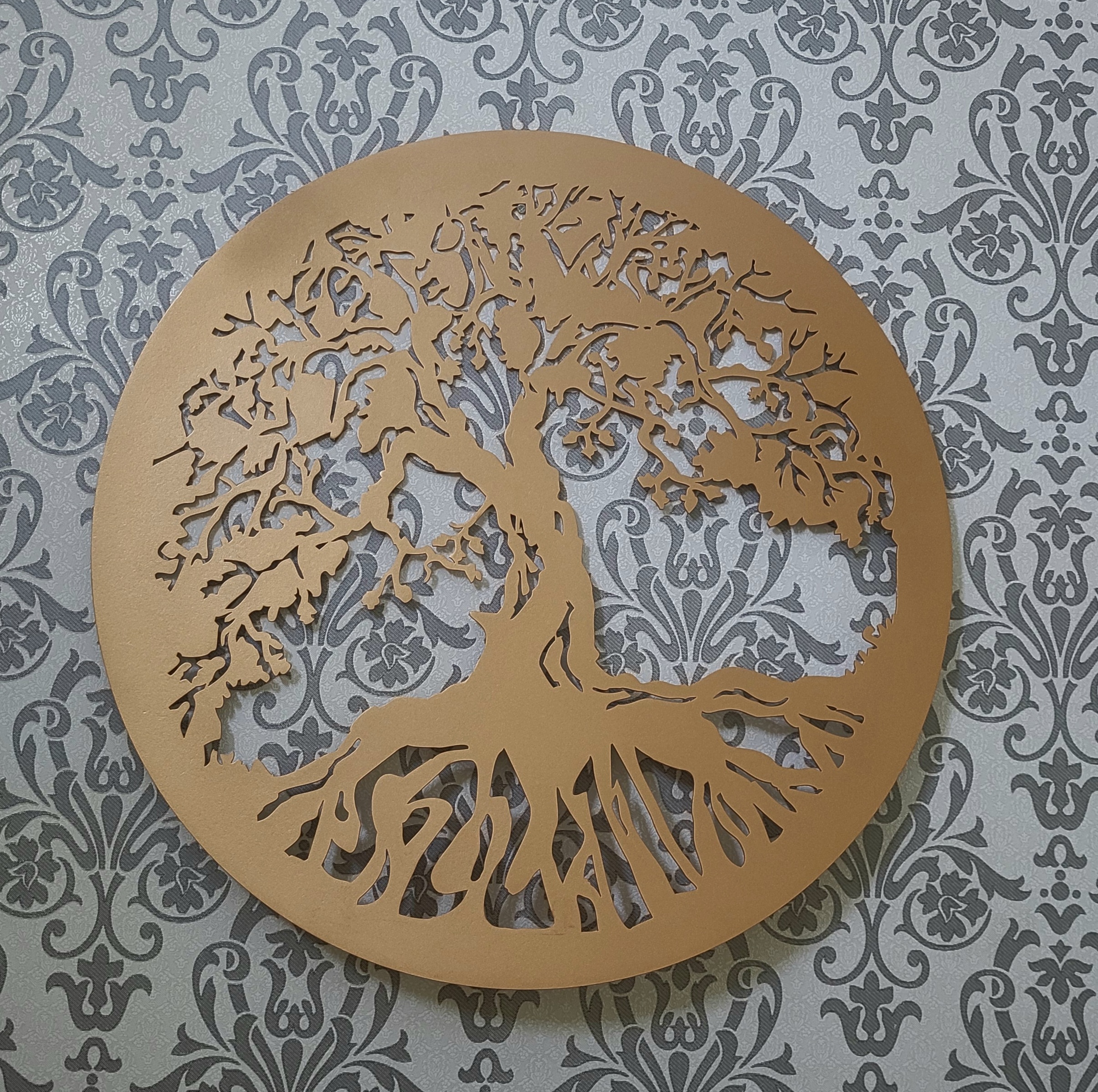 Decoratiune – "Copacul Vietii". Este realizata din material MDF, nuanta: Aramiu. Dimensiuni: 60cm x 60cm