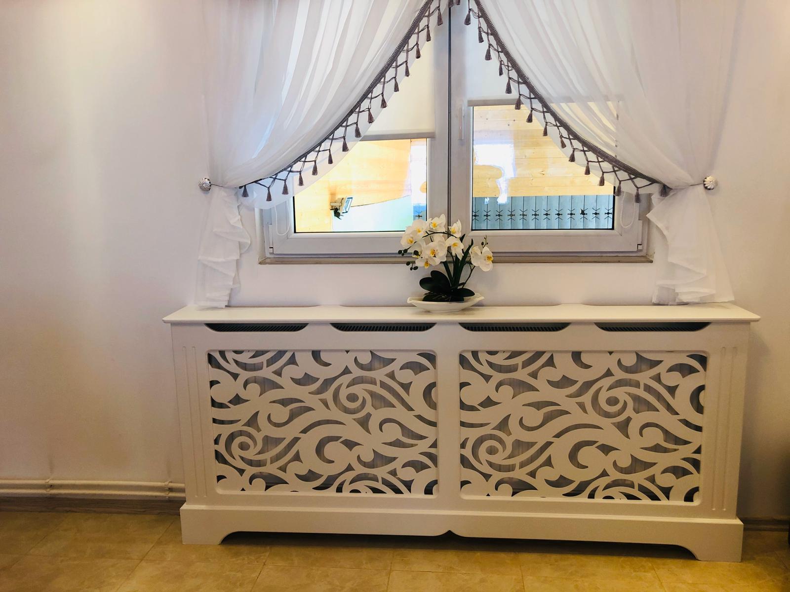 Masca de calorifer din MDF vopsit, culoare la alegere din catalogul de culori RAL. Extracost se va aplica pentru culorile speciale, cele metalizate, combinatiile de culori si MDF furniruit.