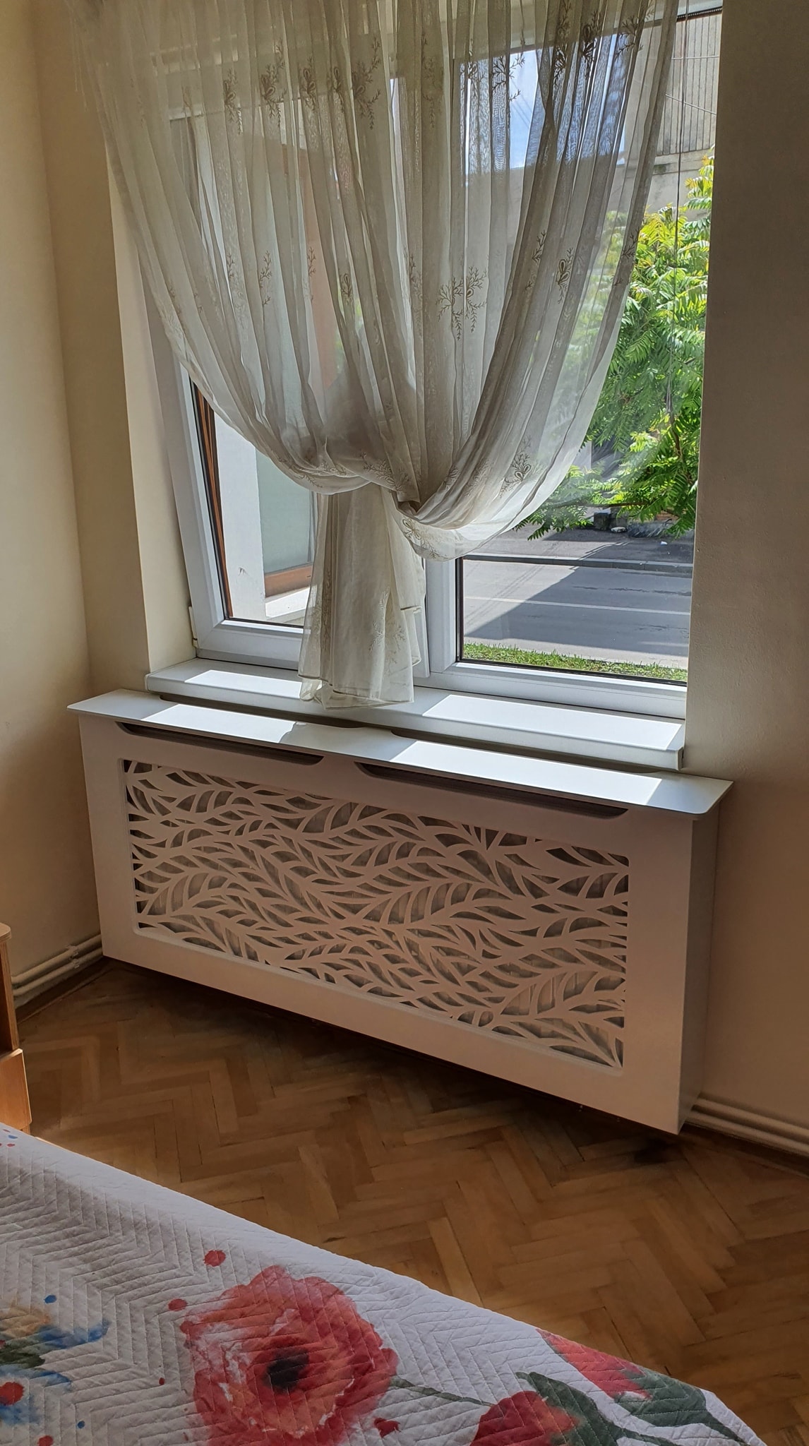 Masca de calorifer din MDF vopsit, culoare la alegere din catalogul de culori RAL. Extracost se va aplica pentru culorile speciale, cele metalizate, combinatiile de culori si MDF furniruit.