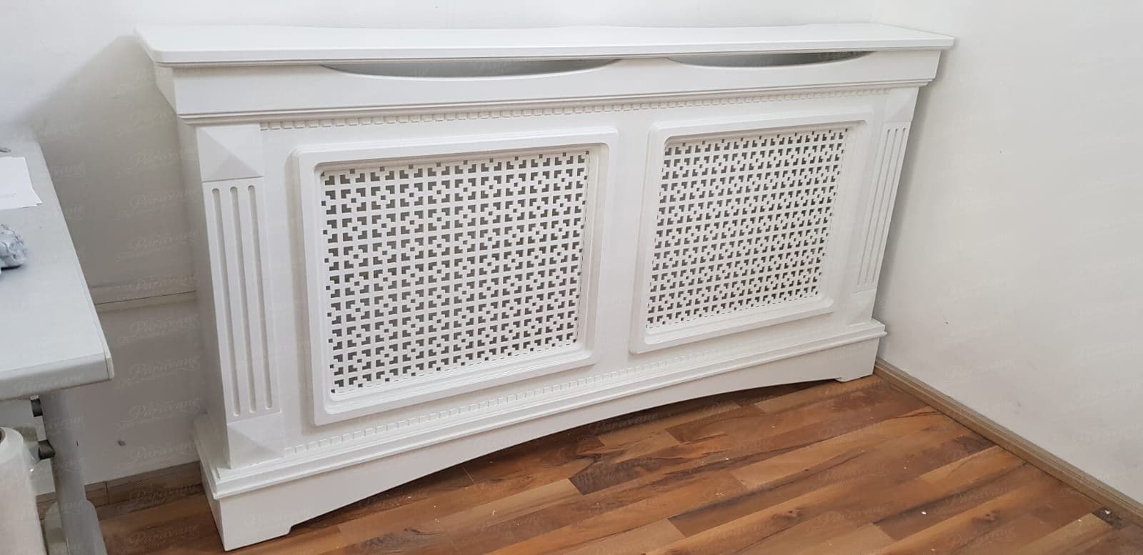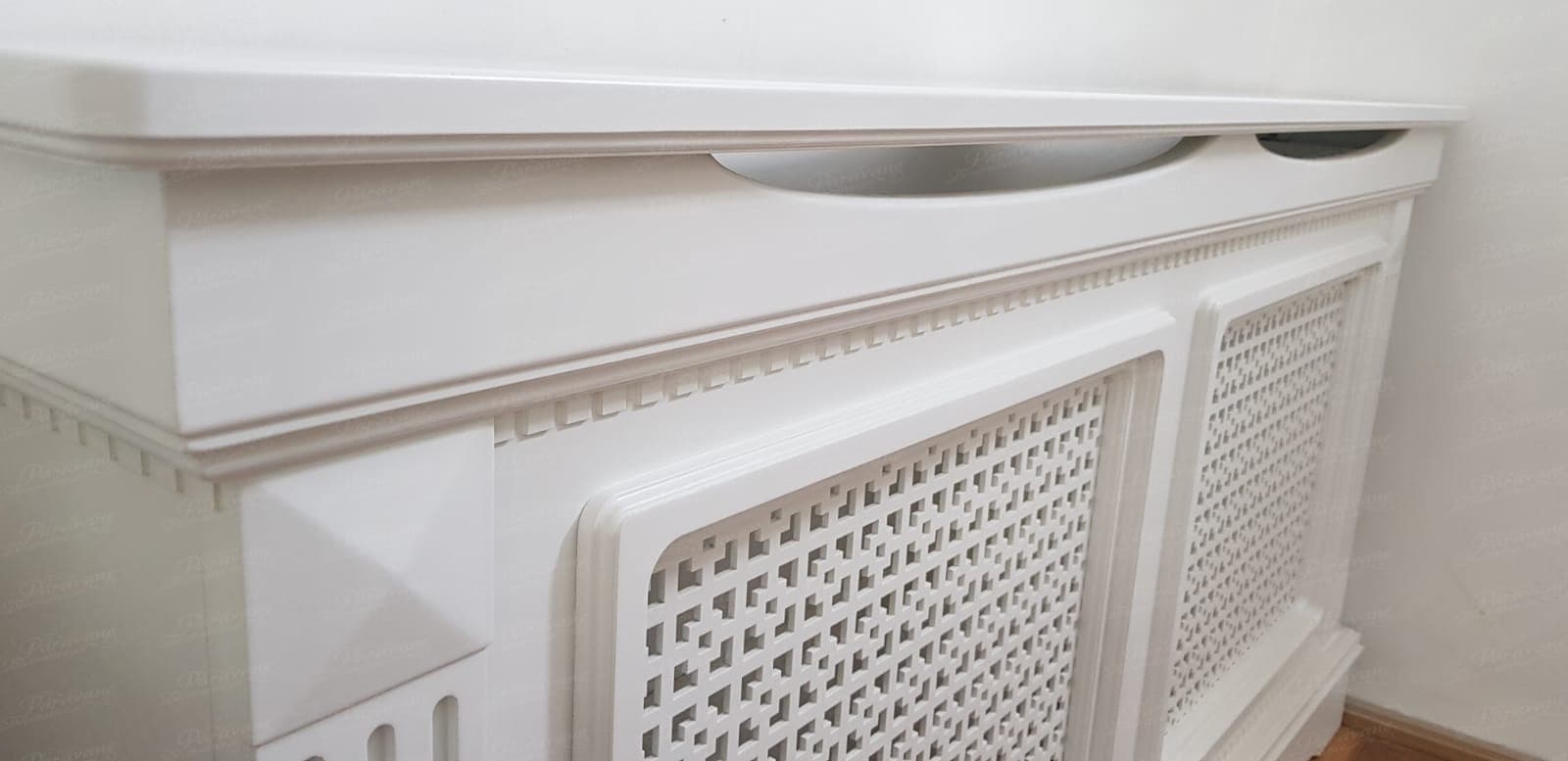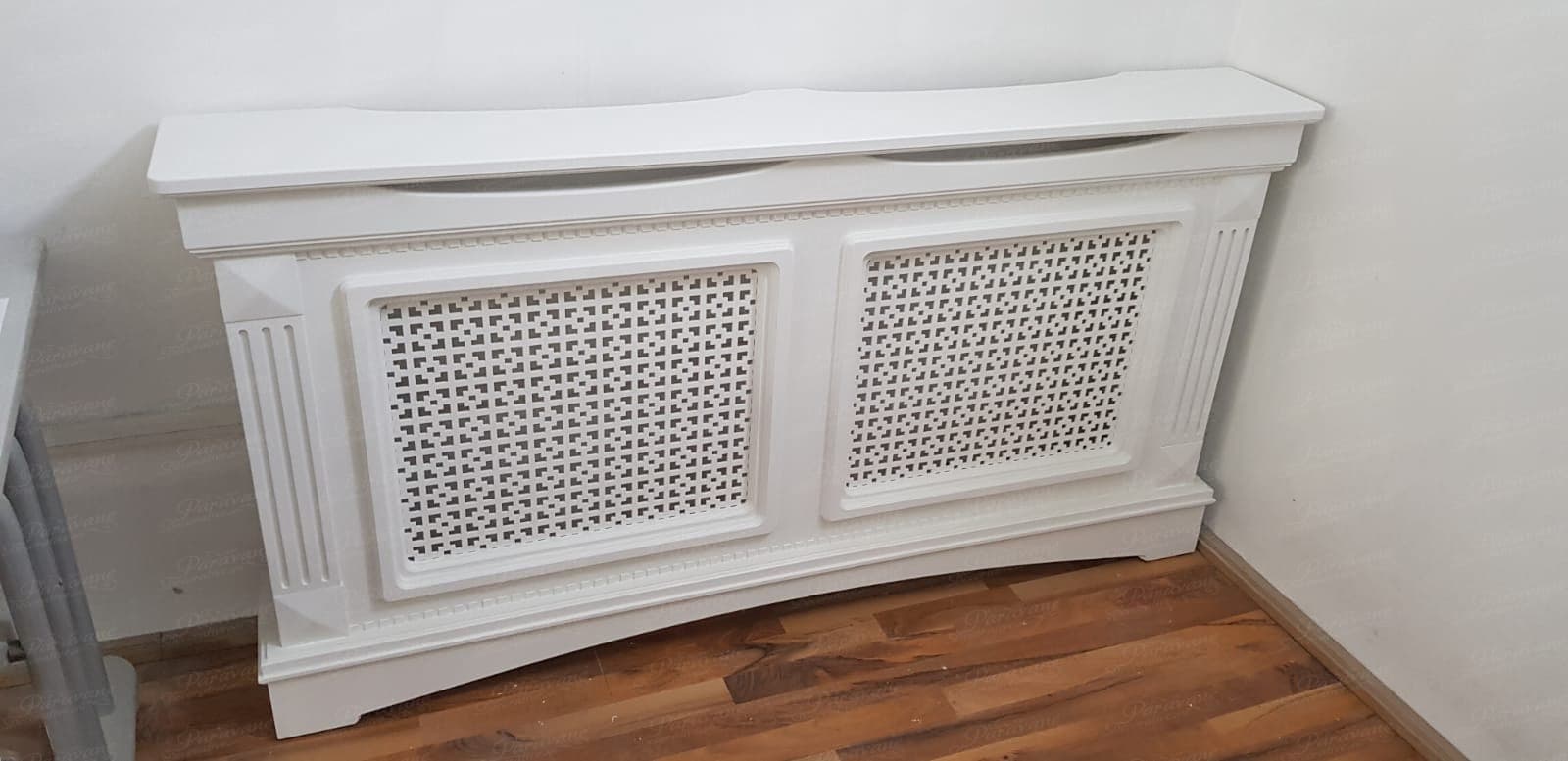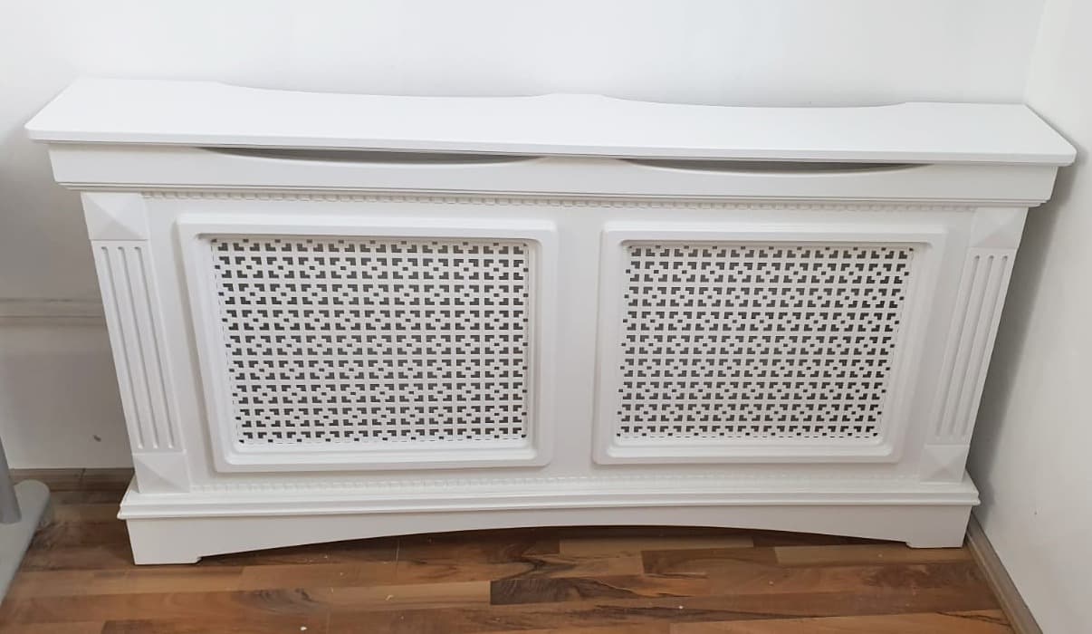 Masca de calorifer din material MDF vopsit, culoare la alegere din catalogul de culori RAL. Extracost se va aplica pentru culorile speciale, cele metalizate, combinatiile de culori si MDF furniruit.