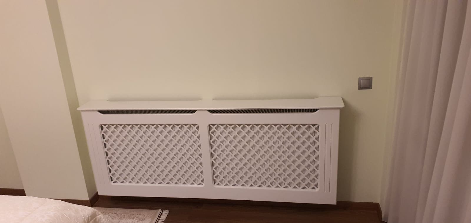 Masca de calorifer din MDF vopsit, culoare la alegere din paletarul RAL. Extracost se va aplica pentru culorile speciale, metalizate, pentru combinatiile de culori si pentru MDF furniruit.
