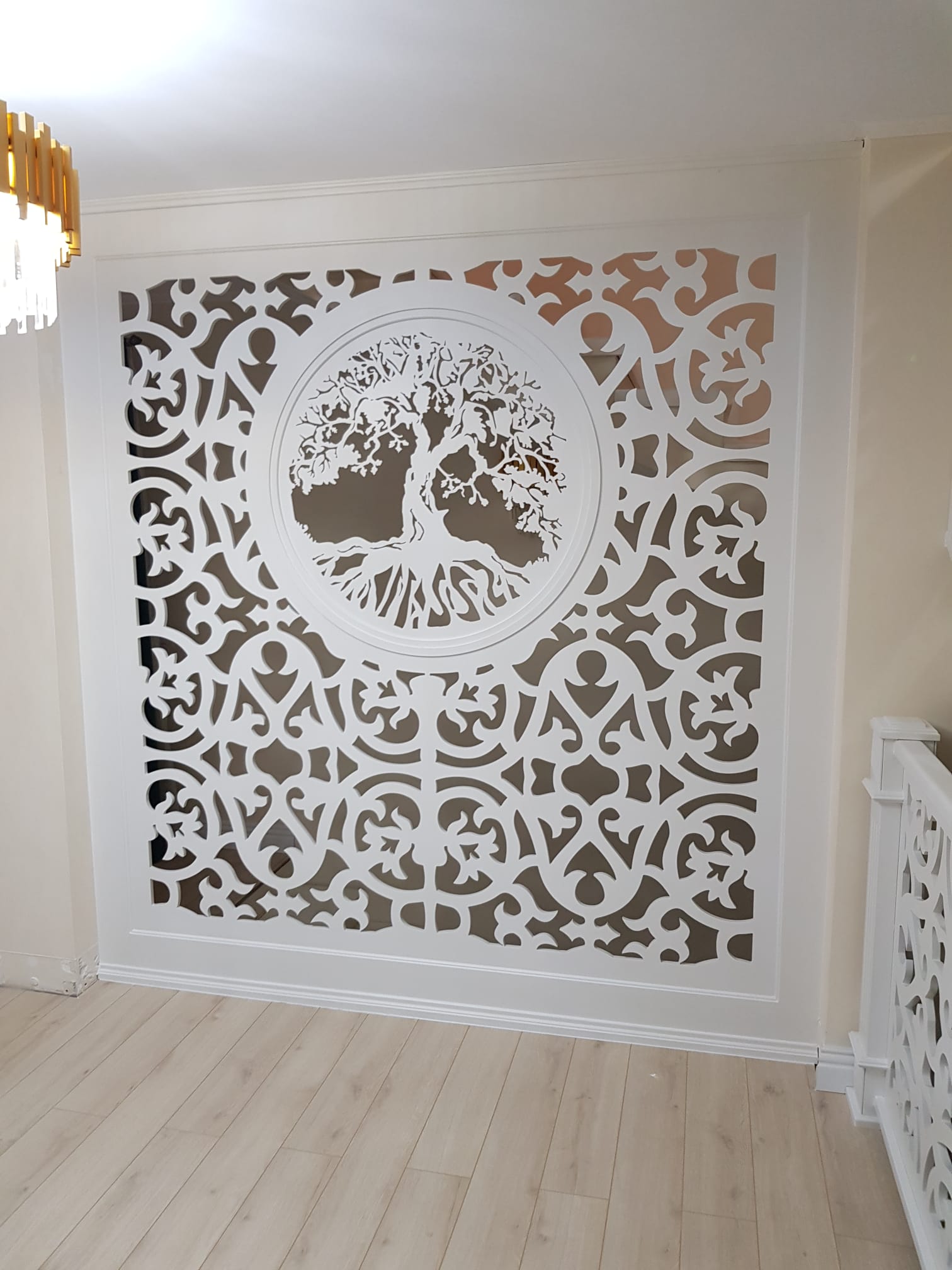 Paravan Decorativ (Ornamental)/ Despartitor din material MDF vopsit, cu rama adaugata - Model Floral + Arborele Vieții