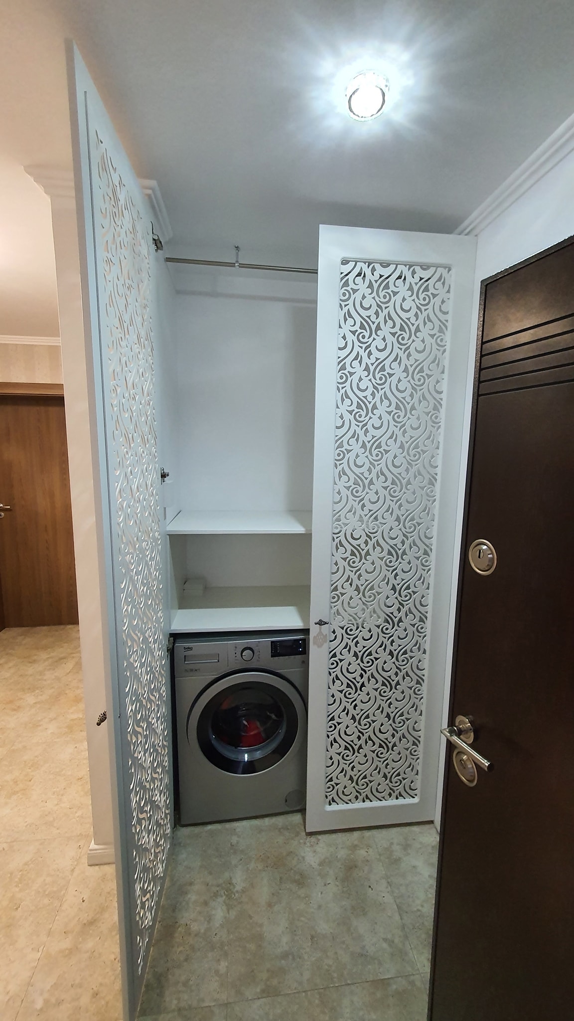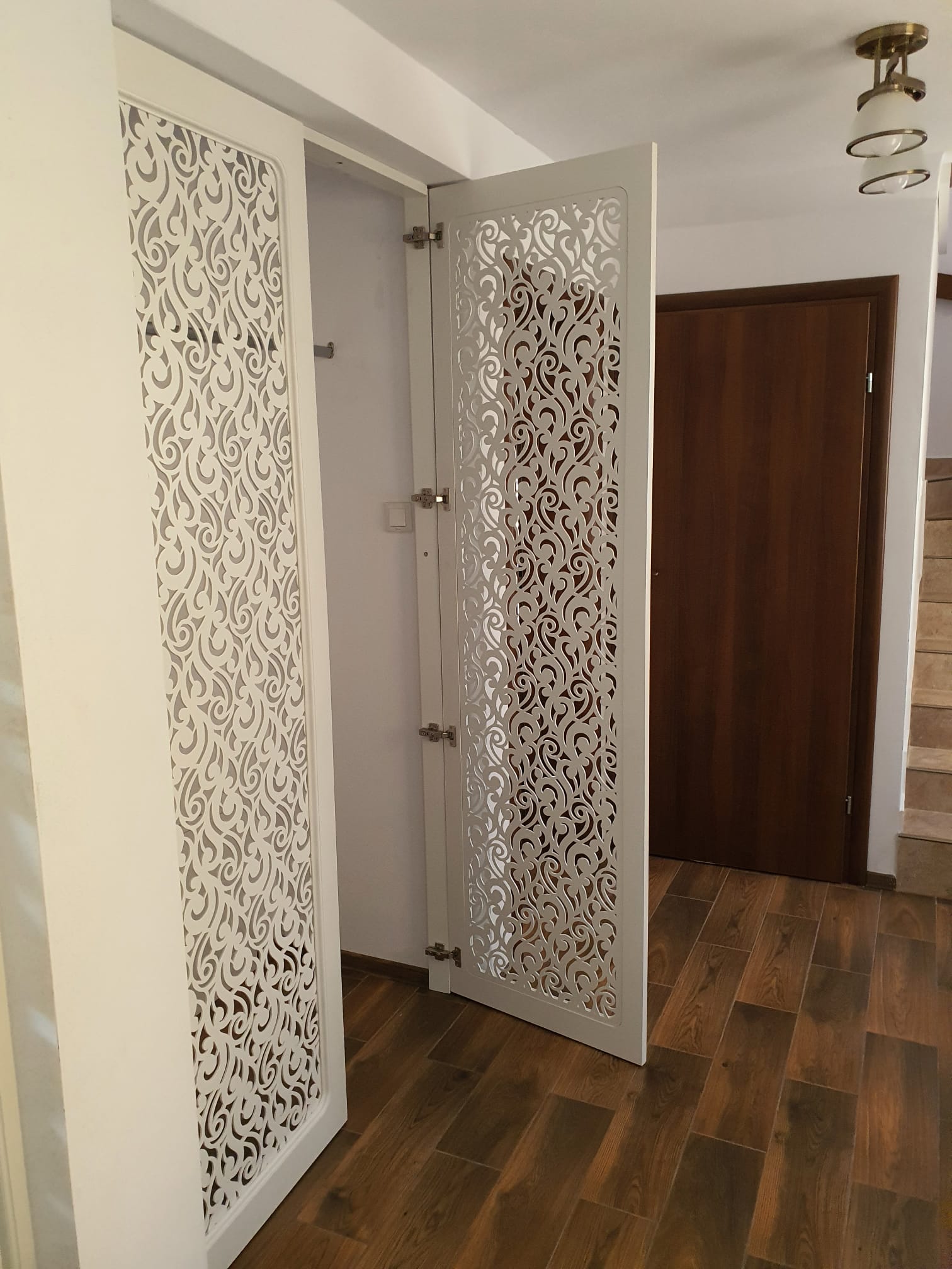 Usi cu balamale din MDF vopsit, culoare la alegere din paletarul RAL, extracost se va aplica pentru culorile metalizate, combinatiile de culori si MDF furniruit.