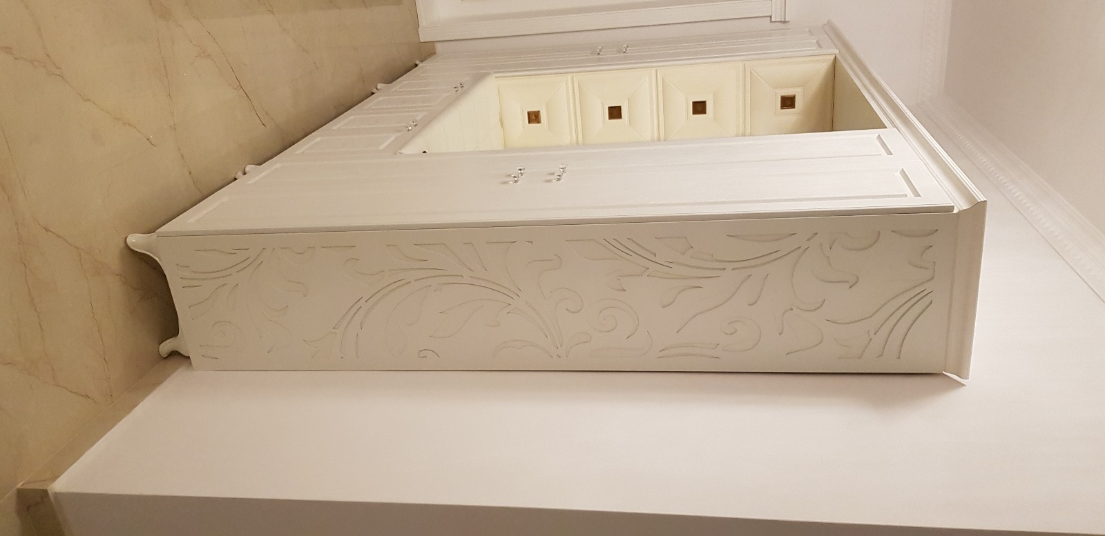 Aplicatie ornamentala din MDF vopsit, culoare la alegere din paletarul RAL, extracost se va aplica pentru culorile metalizate, combinatiile de culori sau MDF furniruit.