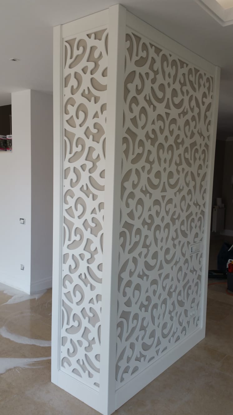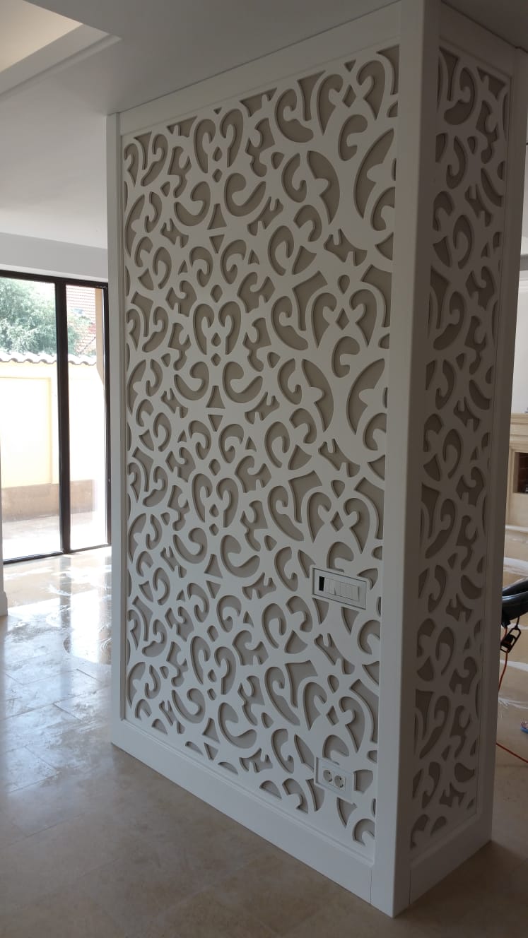 Aplicatie ornamentala din MDF vopsit, culoare la alegere din paletarul RAL. Extracost se va aplica pentru culorile metalizate, combinatiile de culori sau MDF furniruit.