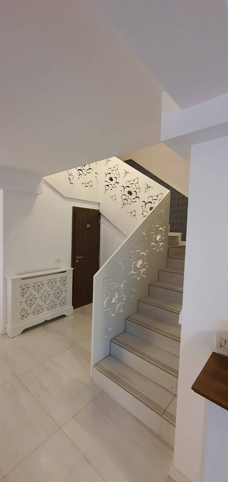 Balustrada Ornamentala Aplicata din MDF vopsit, culoare la alegere din paletarul RAL. Extracost se aplica pentru culorile metalizate, combinatiile de culori si MDF furniruit.