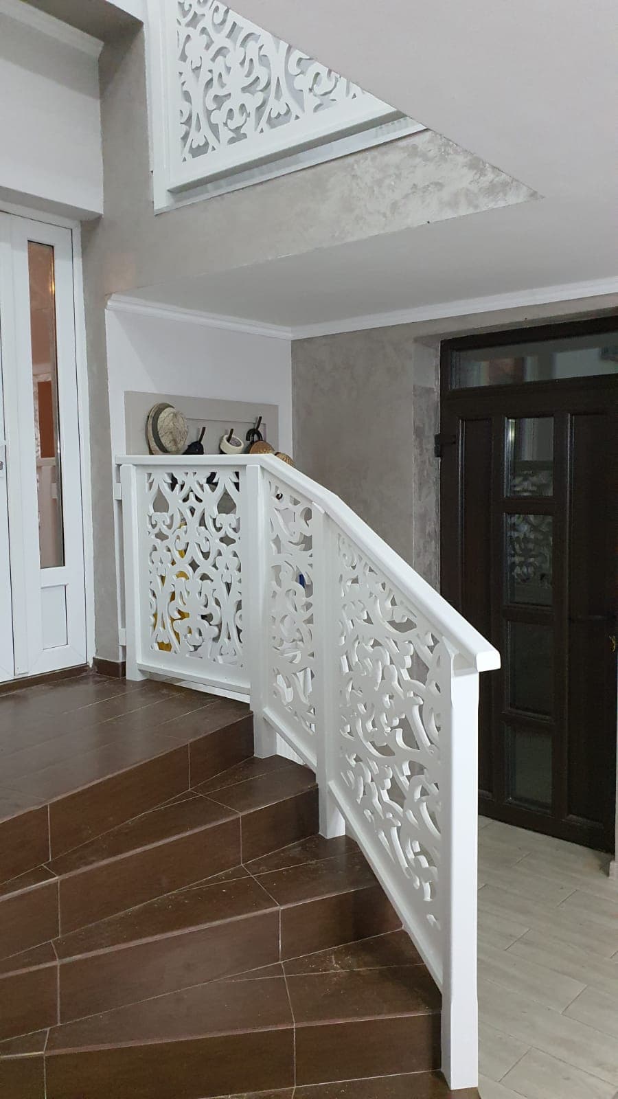 Balustrada Ornamentala cu stalpi simpli si mana curenta din material MDF vopsit - Model Floral
