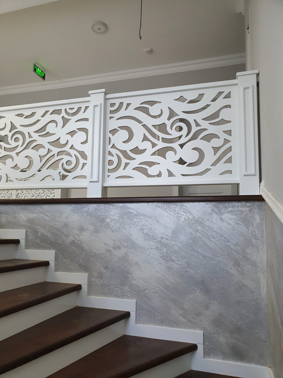 Balustrada Ornamentala din MDF vopsit, culoare la alegere din catalogul de culori RAL. Extracost se aplica pentru culorile metalizate, combinatiile de culori si MDF furniruit.