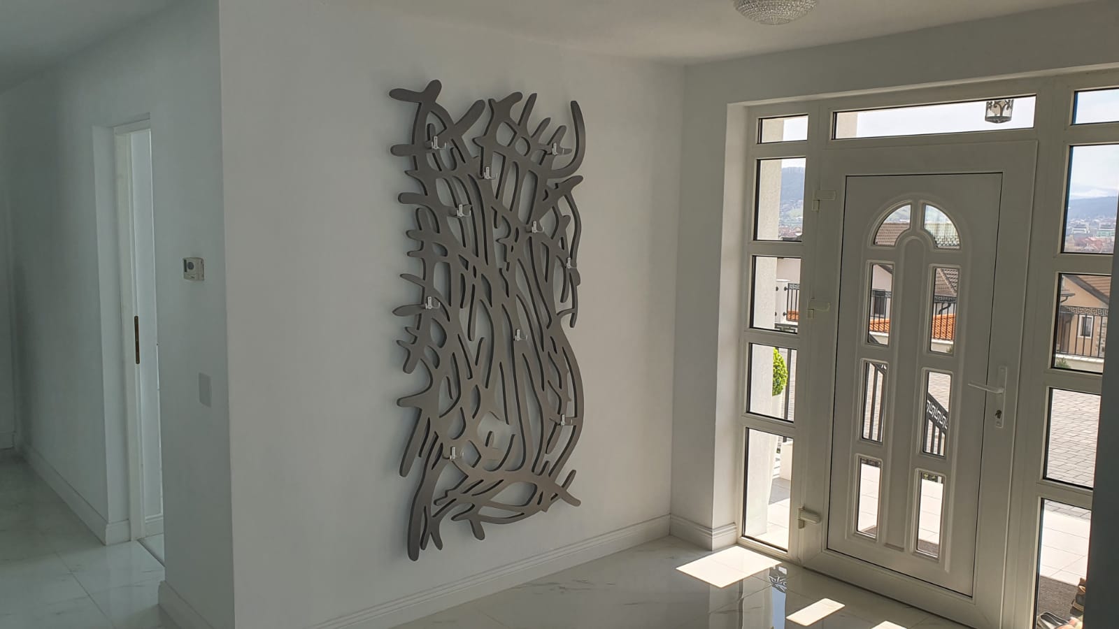 Cuier din material MDF vopsit, culoare speciala metalizata (metalic inox) - Model Haotic Lines