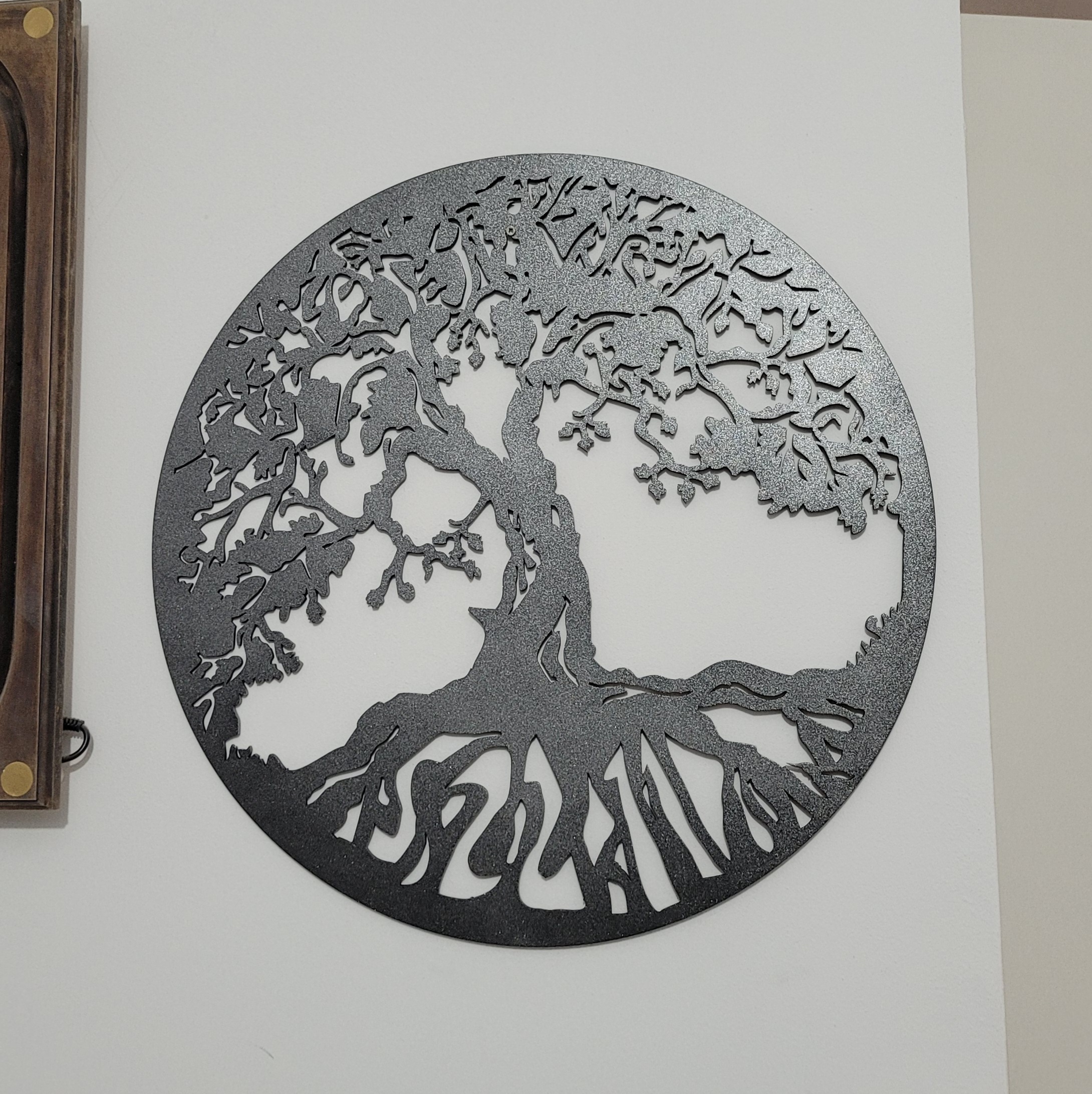 Decoratiune – "Copacul Vietii". Este realizata din material MDF, nuanta: Nergu cu irizatii argintii. Dimensiuni: 47cm x 47cm