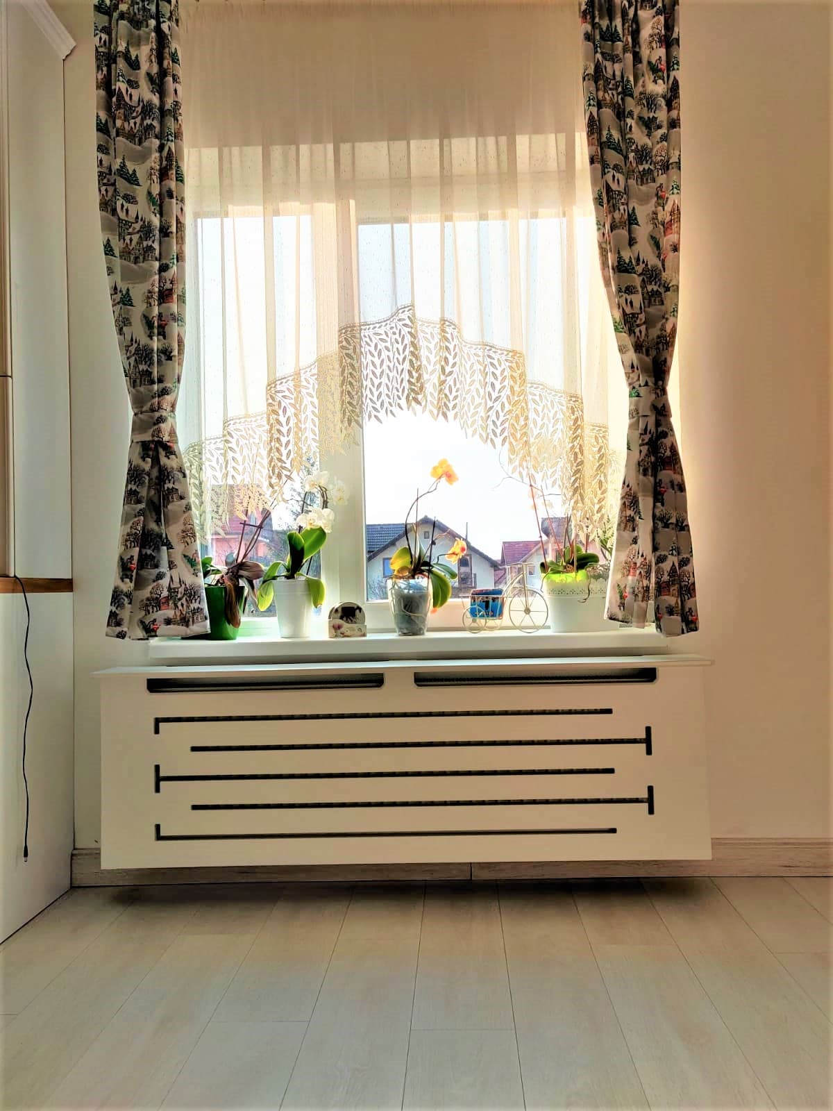 Masca de calorifer din MDF vopsit, culoare la alegere din paletarul RAL. Extracost se va aplica pentru culorile speciale, cele metalizate, combinatiile de culori si MDF furniruit.