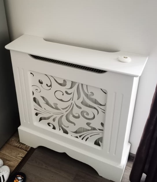 Masca de calorifer din MDF vopsit alb, culoare la alegere din catalogul de culori RAL. Extracost se va aplica pentru culorile speciale, cele metalizate, combinatiile de culori si MDF furniruit.