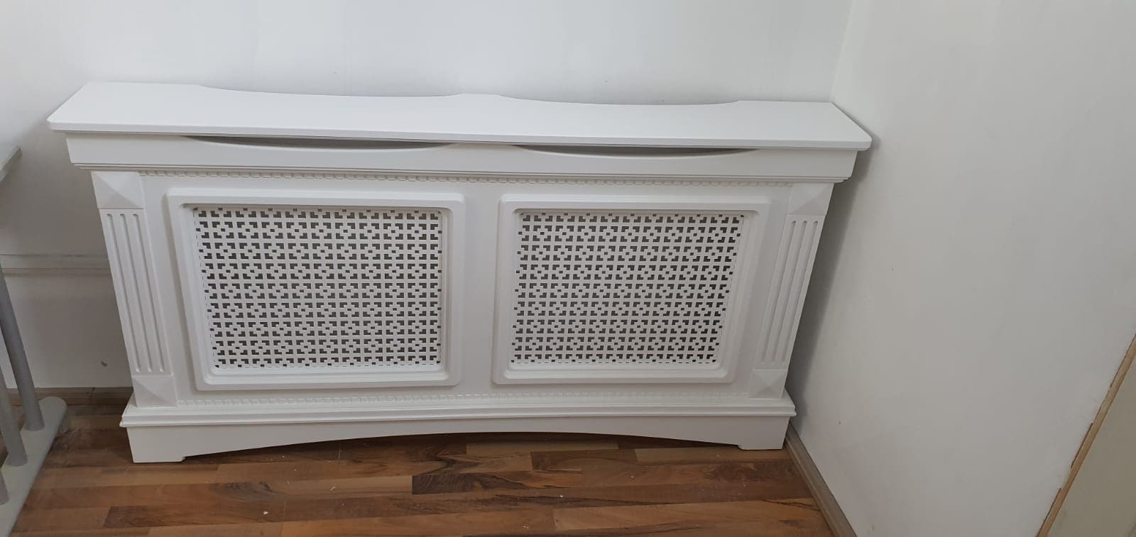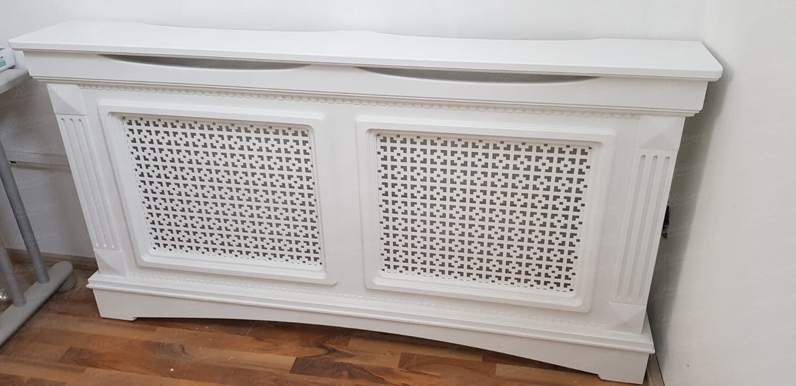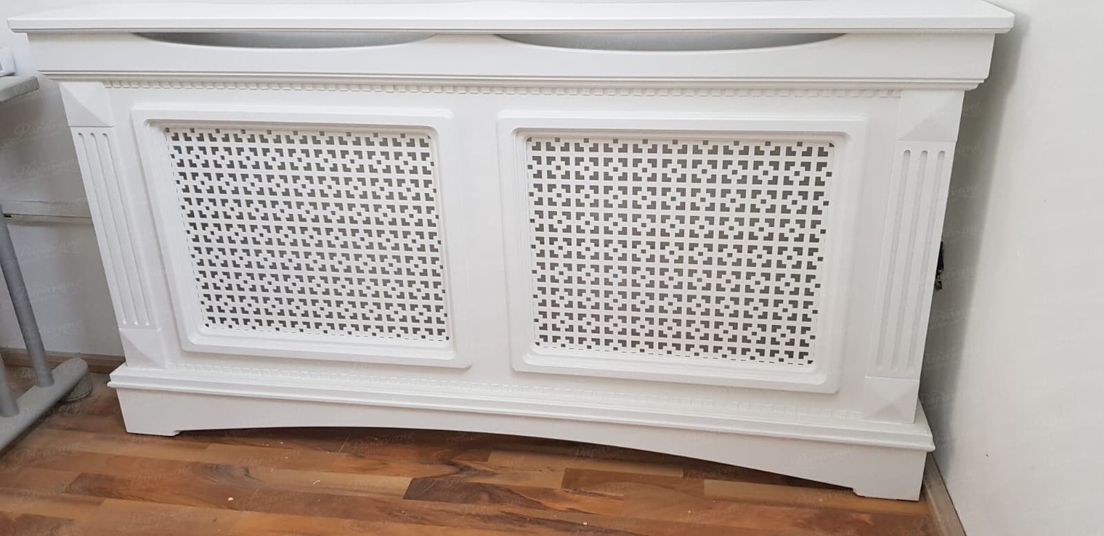 Masca de calorifer din material MDF vopsit, culoare la alegere din catalogul de culori RAL. Extracost se va aplica pentru culorile speciale, cele metalizate, combinatiile de culori si MDF furniruit.