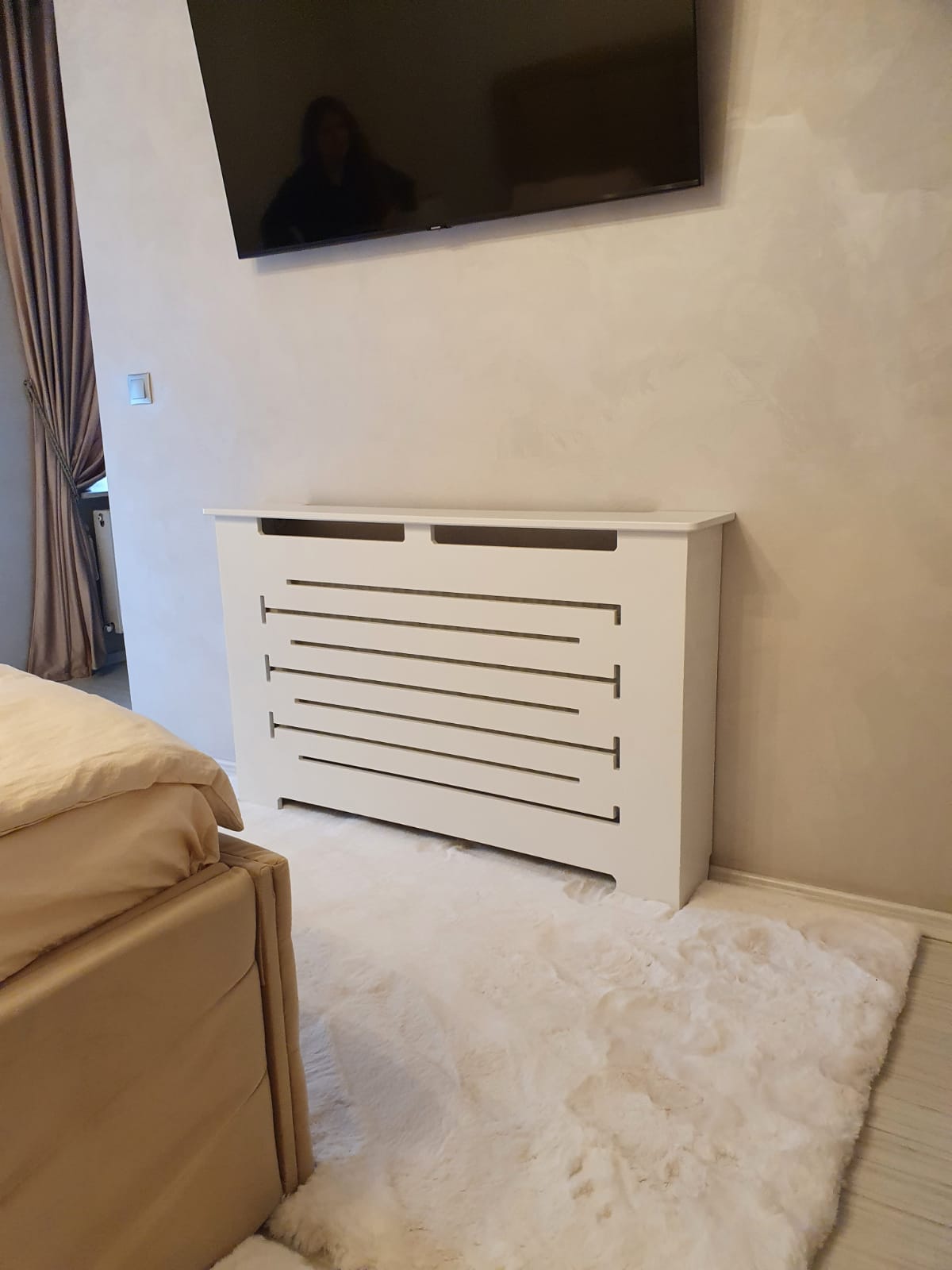 Masca de calorifer din MDF vopsit, culoare la alegere din paletarul RAL. Extracost se va aplica pentru culorile speciale, cele metalizate, combinatiile de culori si MDF furniruit.