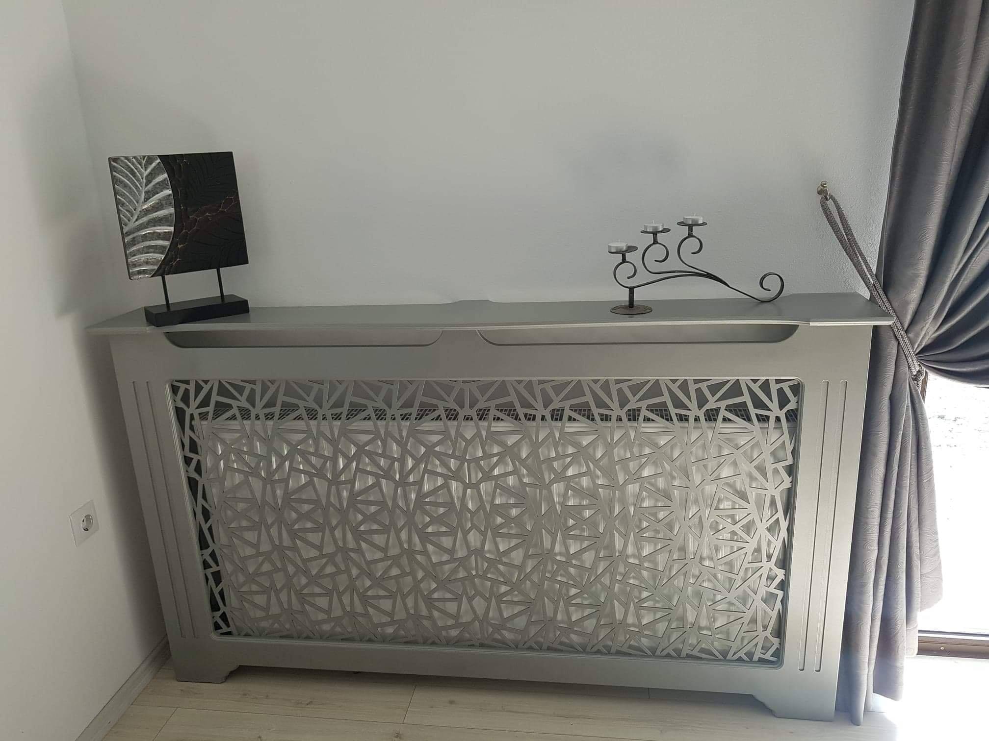 Masca de calorifer din material MDF vopsit cu culoare speciala metalizata, cu picior drept si gravura laterala - Model Triunghiuri