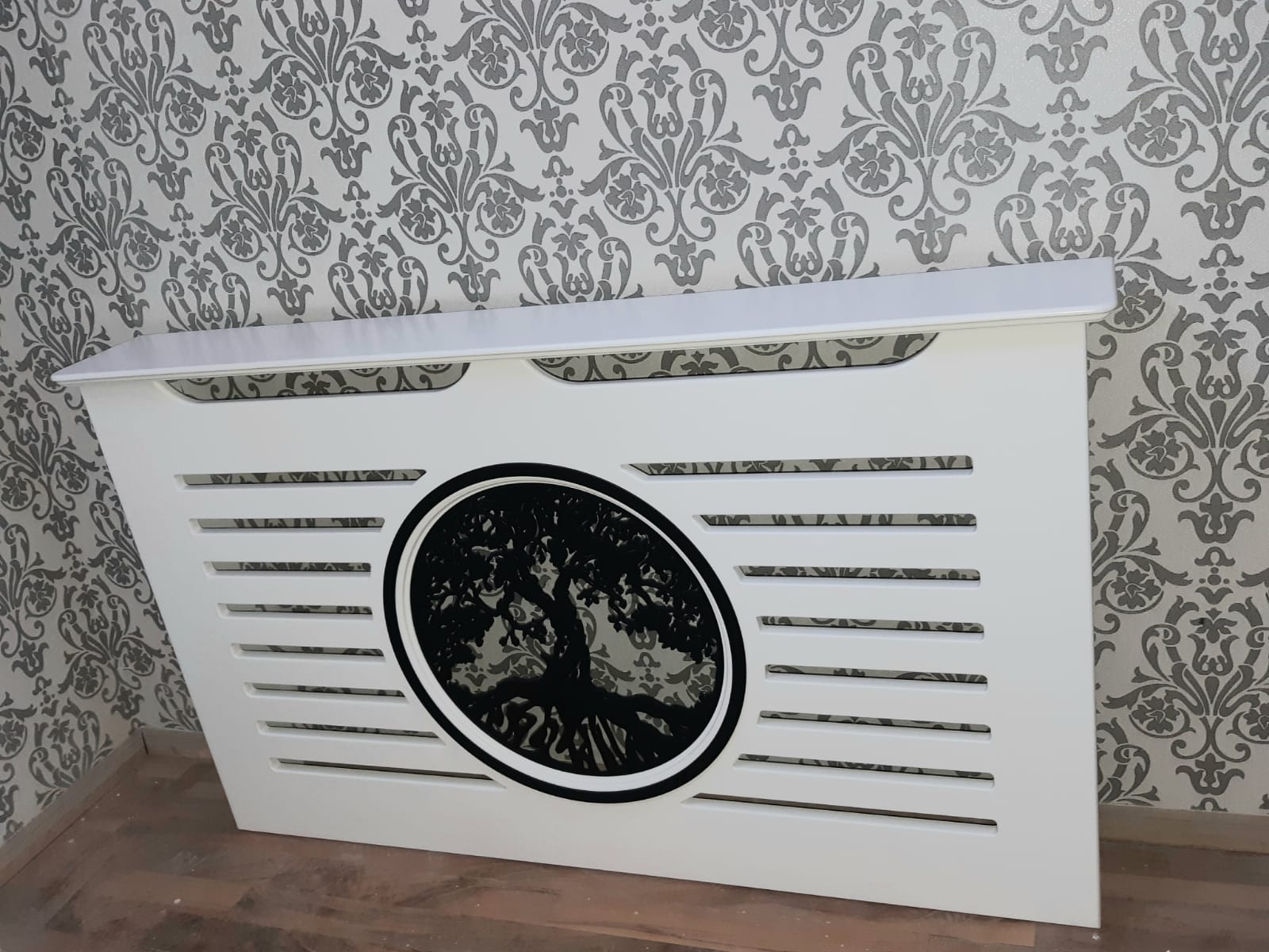 Masca de calorifer din material MDF vopsit, suspendata, cu gravuri laterale - Model Arborele Vietii Black & White