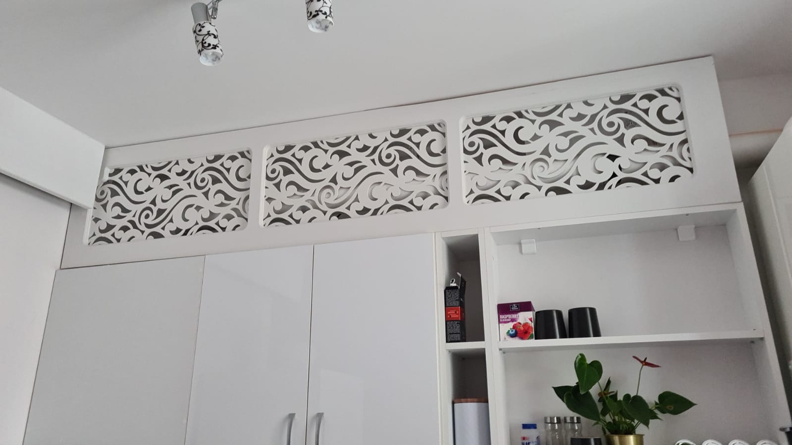 Masca pentru tevi vopsita, culoare la alegere din catalogul de culori RAL, material MDF. Material PVC se poate realiza doar pe alb. Extracost se va aplica pentru culorile metalizate, combinatiile de culori si MDF furniruit.