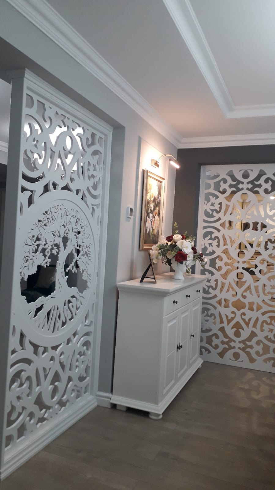 Paravan Decorativ (Ornamental)/ Despartitor din material MDF vopsit, cu rama adaugata - Model Floral + Arborele Vieții