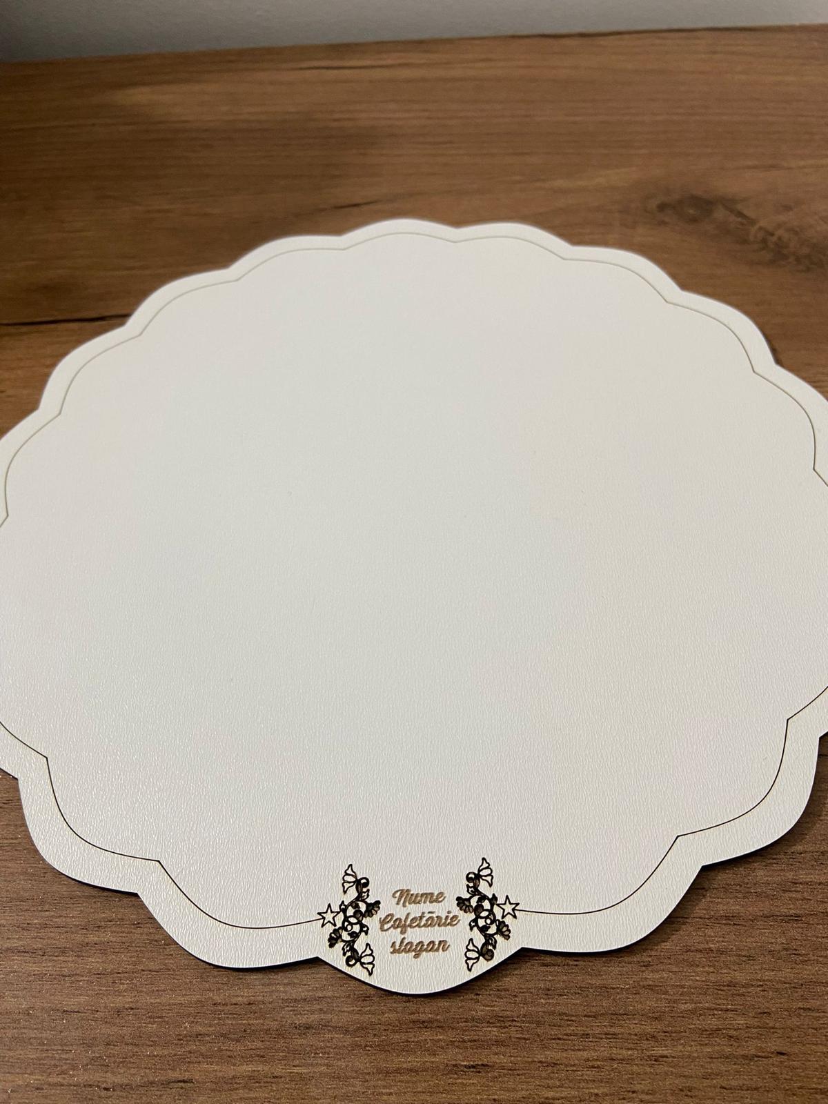 Produsele de patiserie si prajiturile sunt unele dintre cele mai importante elemente ale evenimentelor din viata dumneavoastra. Avand in vedere acest lucru, am creat pentru dvs. un suport care va permite sa transportati in siguranta produsele de cofetarie. Suportul pentru tort este rigid din material HDF alb, 3mm. Se poate grava numele cofetariei, sloganul sau text personalizat.