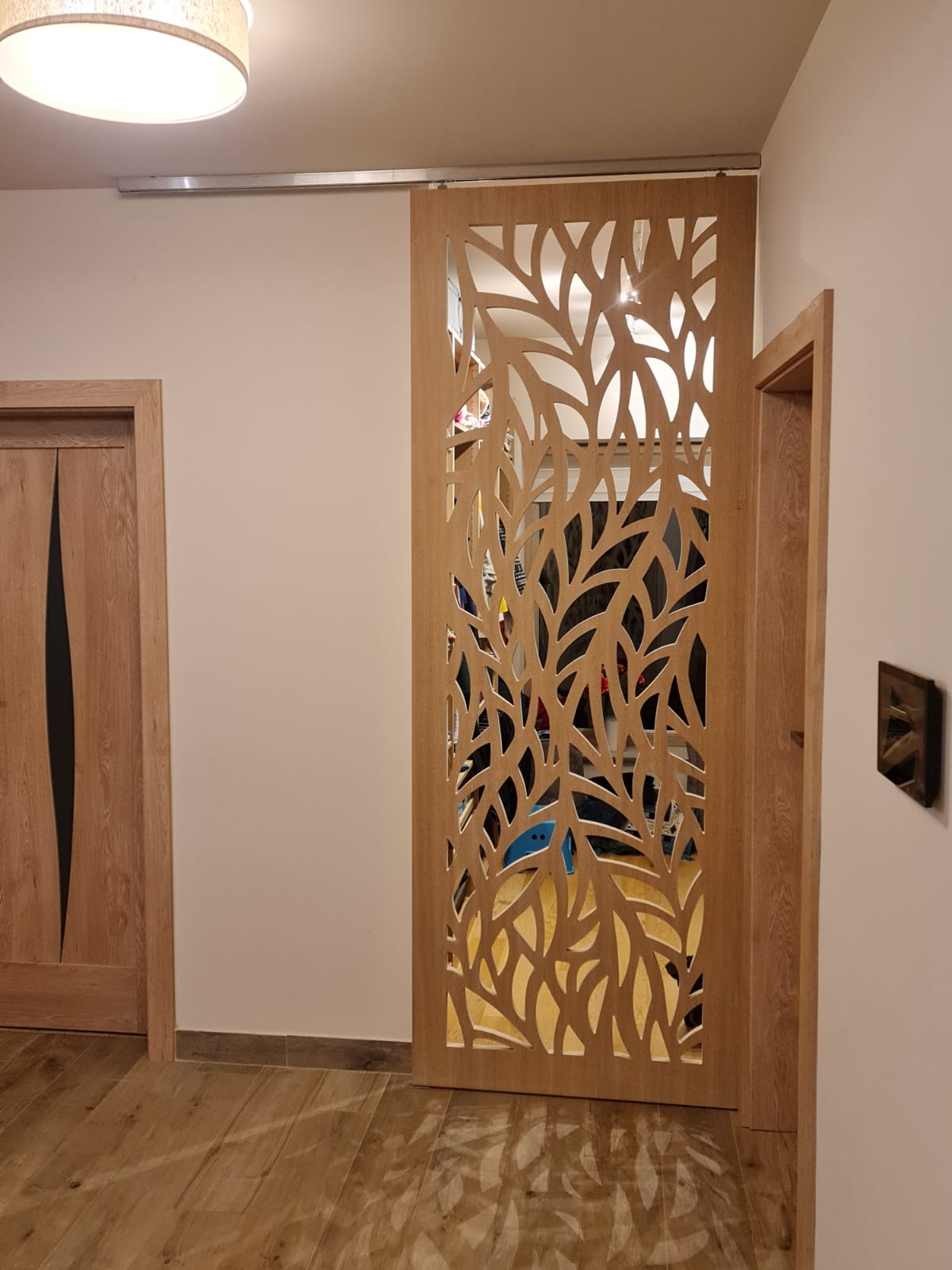 Ușă culisantă din material MDF, Natural wood - Model Frunza.