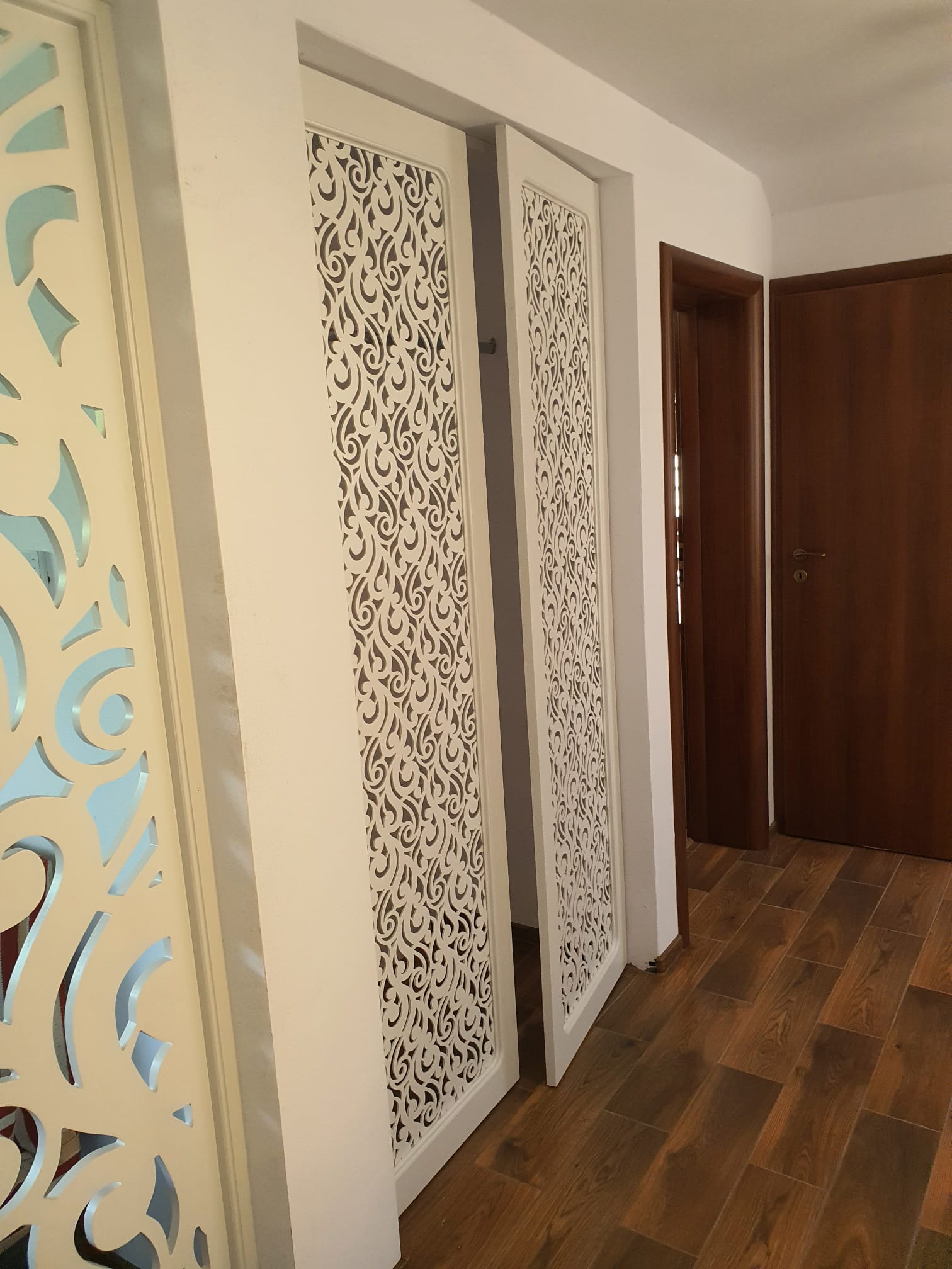 Usi cu balamale din MDF vopsit, culoare la alegere din paletarul RAL, extracost se va aplica pentru culorile metalizate, combinatiile de culori si MDF furniruit.